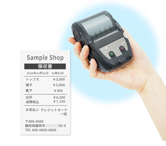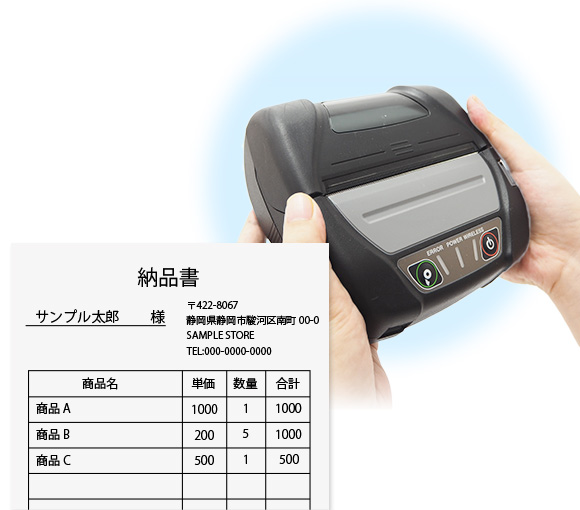 モバイルプリンターとは、バッテリーを内蔵し、コンセントがなくても使用可能な業務用小型プリンターです。スマートフォンやタブレット、ハンディ端末とBluetoothなどで接続し、その場ですぐに印刷することが出来るのが特長です。