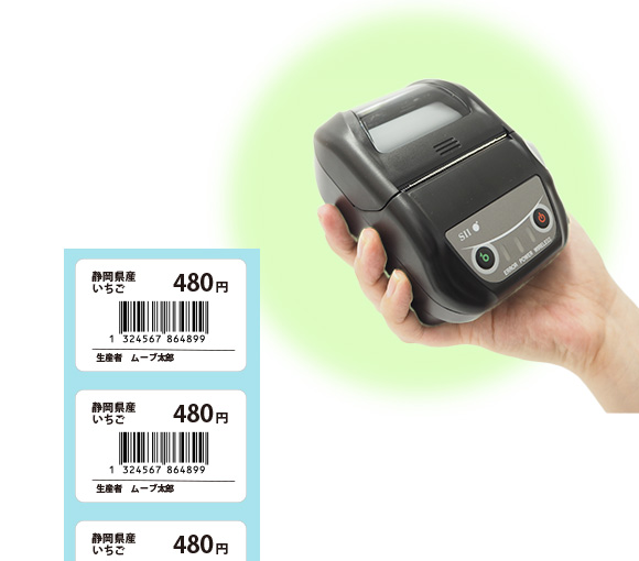 ラベル紙 ( マーク、ギャップ) の印刷に対応。370g (バッテリー含む) の軽量化で持ち運びに最適。ラベルレイアウト作成も【SII Layout Editor(無償)】で値札ラベルや食品ラベルを簡単に作成可能。
